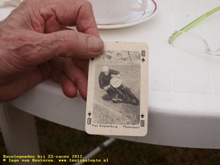 Meer foto’s van deze ontmoeting in Album ZZ-races. Daar vind je ook een foto van de twee neven van Knijnenburg, waarvan de ene, Eric Faber, druk bezig is met een boek over Piet. Voor de ereronde van Piet Knijnenburg tijdens de Classic Centennial TT van 2010, klik hier.